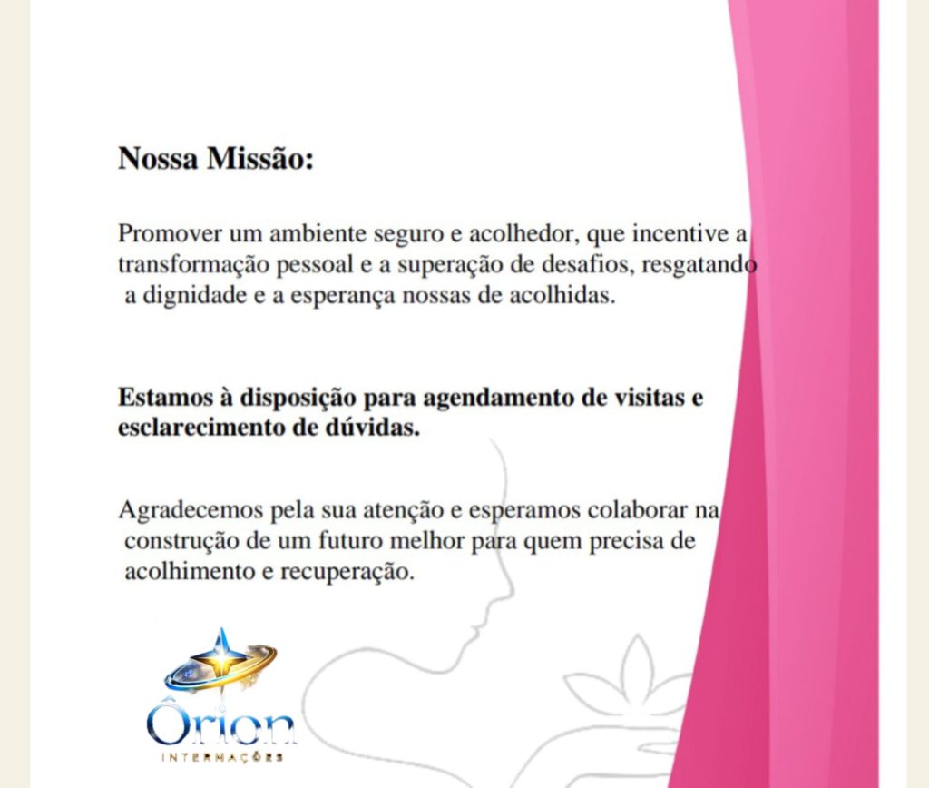 Nós realizamos um trabalho de acolhimento e reinserção de dependentes químicas e transtornos psicossociais exclusivo para Mulheres. Nosso plano de tratamento é personalizado para as necessidades especificas de cada acolhida.